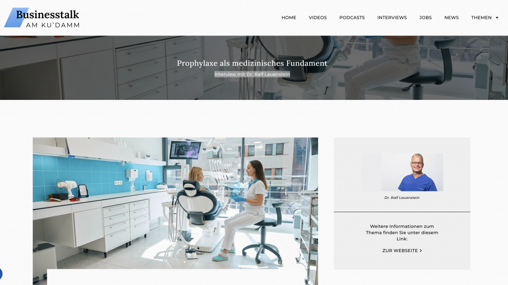In dem Artikel auf „Business Talk am Kudamm“ erläutert Dr. Ralf Lauenstein, wie sich die zahnmedizinische Prophylaxe von einer reinen Zusatzleistung zu einem essenziellen medizinischen Fundament für die gesamte Körpergesundheit gewandelt hat.